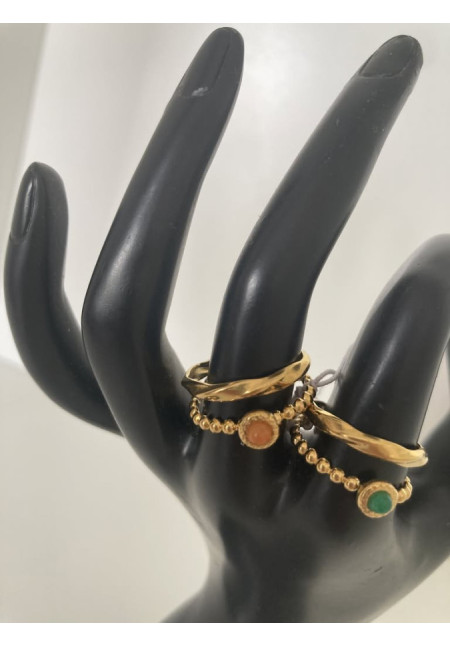 Todos nuestros anillos son ajustables.Todos nuestros anillos son de Acero. Algunos de Acero más otros componentes como pasta, pedrería, madera, perlas, etc.